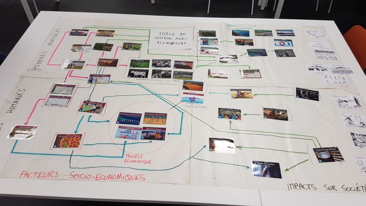 Tijdens de Agri'Food Collage maak je als team een overzicht van de vraagstukken die op onze voedselvoorziening drukken, en bespreek je acties die nodig zijn. Het is een serious game dat hetzelfde formaat gebruikt als het Climate Fresk-spel (zie Climate Fresk):