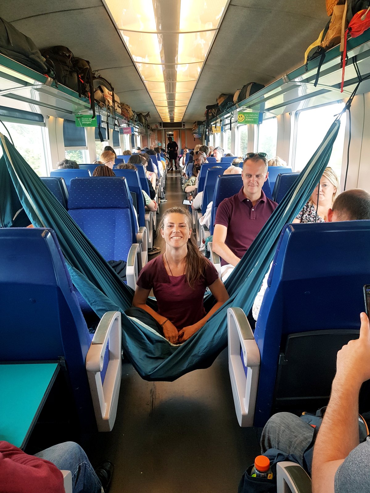 - Low-carbon travel: Foldable bike + Interrail + regional trains.